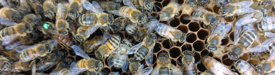 Bees are nice to handle and productive. Queens are marked and clipped.
